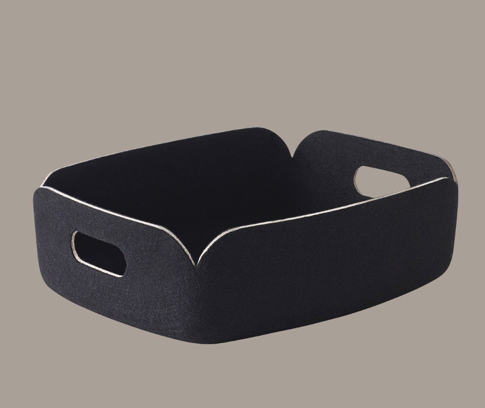 Le panier emblématique Restore est offert en une nouvelle option : Restore Tray. Le nouveau modèle est fabriqué à partir du même composite de feutre polymère durable que la version originale et il est suffisamment polyvalent pour être utilisé de différentes manières. Le panier Tray est idéal pour ranger journaux, livres et petits appareils électroniques.