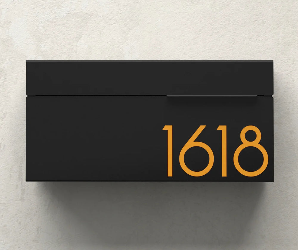 * Si vous ajoutez des chiffres en décalque vinyle à votre boite, veuillez nous confirmer par écrit lors de la commande, votre numéro civique, sa couleur et votre choix de fonte typographique.
