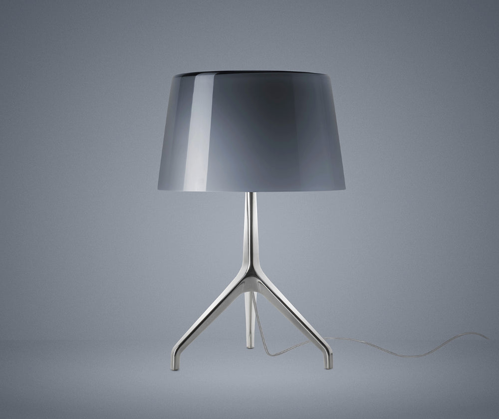 Une présence bien équilibrée et sophistiquée, imposante mais pas ostentatoire, basée sur le contraste entre la chaleur du diffuseur en verre - qui est soufflé à la main selon un procédé artisanal - et la technologie du trépied en métal. Autre interprétation du concept de la table de chevet classique, Lumiere XX se distingue par un look plus clair et plus marqué par rapport à la Lumiere classique.