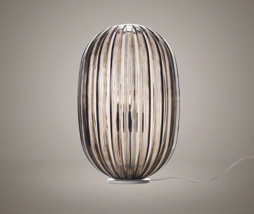 Avec son design évoquant une perle de verre poli, la lampe de table Plass crée un kaléidoscope de lumière sur le plan d’appui et dans la pièce. Plass ressemble à une perle de verre de Murano frappée par les rayons du soleil, mais ici la lumière vient de l’intérieur, plutôt que de l’extérieur, réfléchie par les incisions à la surface. L'effet unique qu'elle produit est encore plus immédiat.