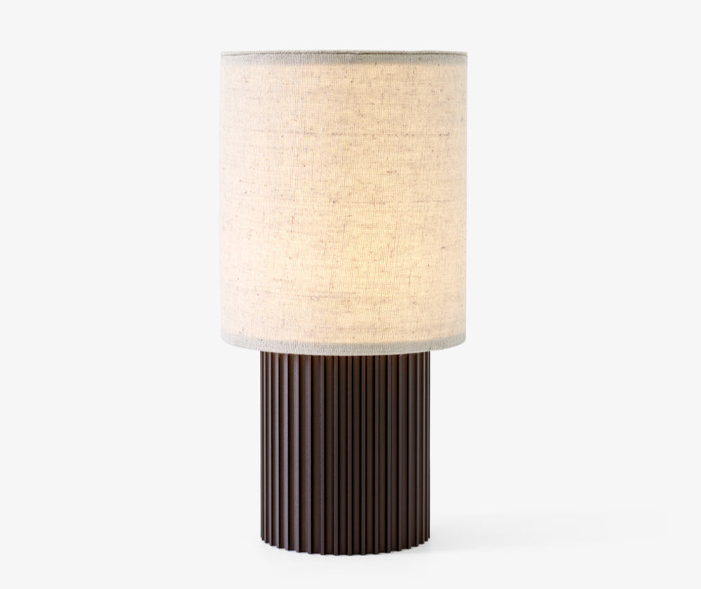 Soyez assuré que l'ambiance sera agréable avec Manhattan SC52, une lampe de table portative par Space Copenhagen. Sa base d'inspiration industrielle est fabriquée en aluminium anodisé de couleur bronze et un abat-jour en toile de couleur crème se trouve au sommet. Cette lampe alimentée par batterie peut fonctionner pendant onze heures au réglage le plus élevé, avec une option de batterie supplémentaire qui permet un fonctionnement supplémentaire. Elle se recharge facilement avec un câble USB magnétique ou un plateau de chargement.