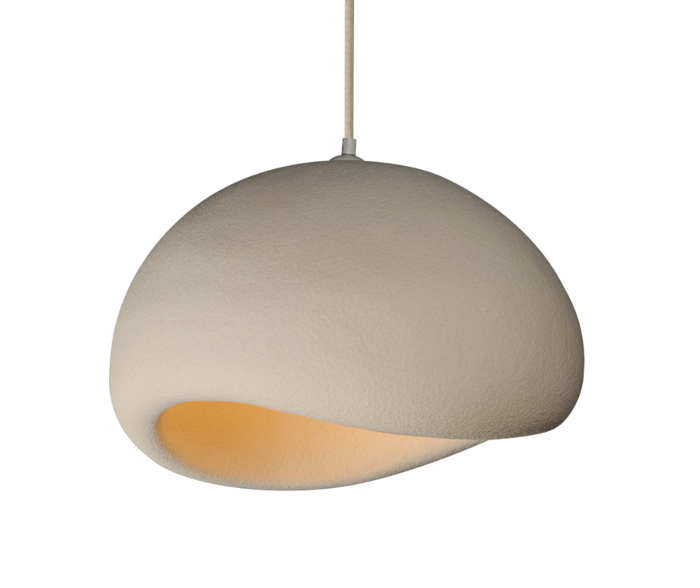Inspirées des côtes rocheuses de l'île du Sud de la Nouvelle-Zélande, les formes organiques de la suspension Moreraki en polyuréthane, semblables à des rochers, sont des masses légères et pourtant volumineuses. Avec une texture chatoyante semblable à du sel, les suspensions sont finies dans une finition Oyster blanc cassé.