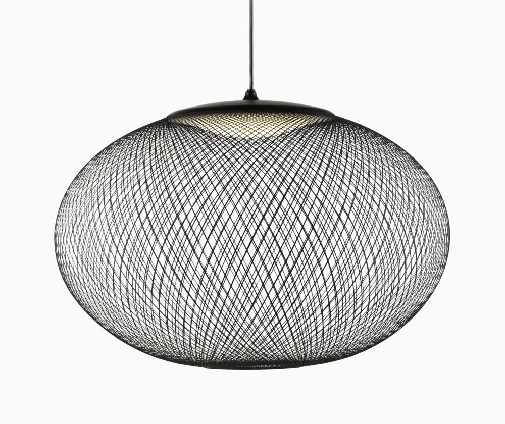 NR2 de Bertjan Pot est une bulle élégante et lumineuse de fil blanc ou noir. Le motif en treillis crée une fine toile qui brille à la lumière. La fine toile est de forme ovale le module DEL intégré dans le luminaire diffuse subtilement une lueur douce et magique dans la pièce.