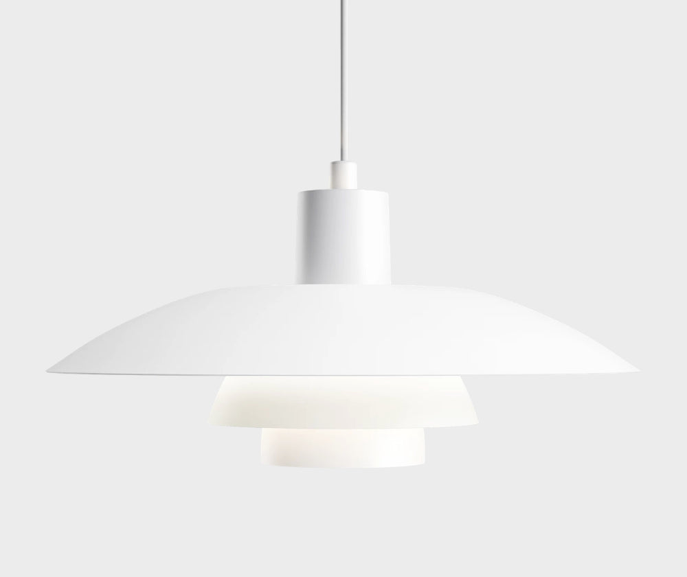 Poul Henningsen a conçu la suspension Louis Poulsen PH en 1958 dans le but de fournir une lumière 100 % non éblouissante. Sa conception repose sur le principe d'un système réfléchissant à trois abat-jour, qui dirige l'essentiel de la lumière vers le bas et latéralement. Les abat-jour sont en métal et peints en blanc pour assurer une répartition uniforme et confortable de la lumière.