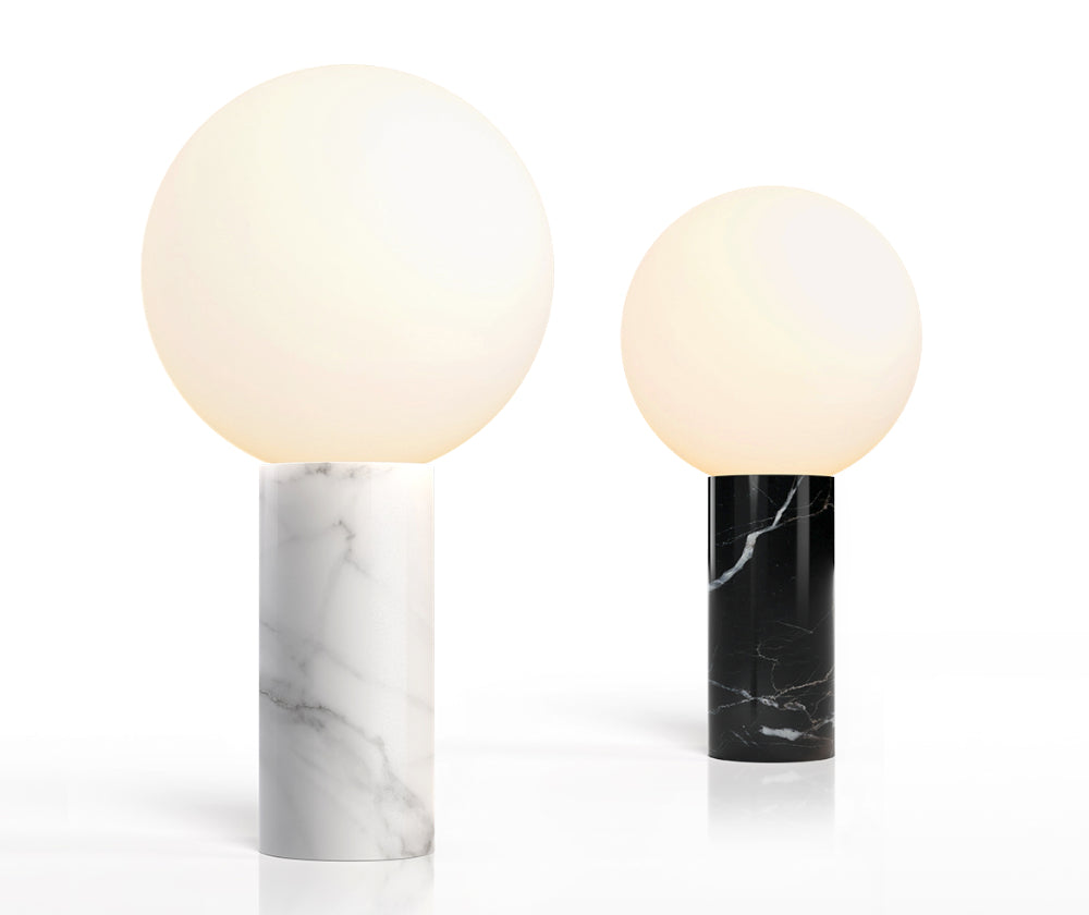 Marbre blanc de Carrare ou marbre noir Marquina, globe blanc en verre opalin, fil de 6'