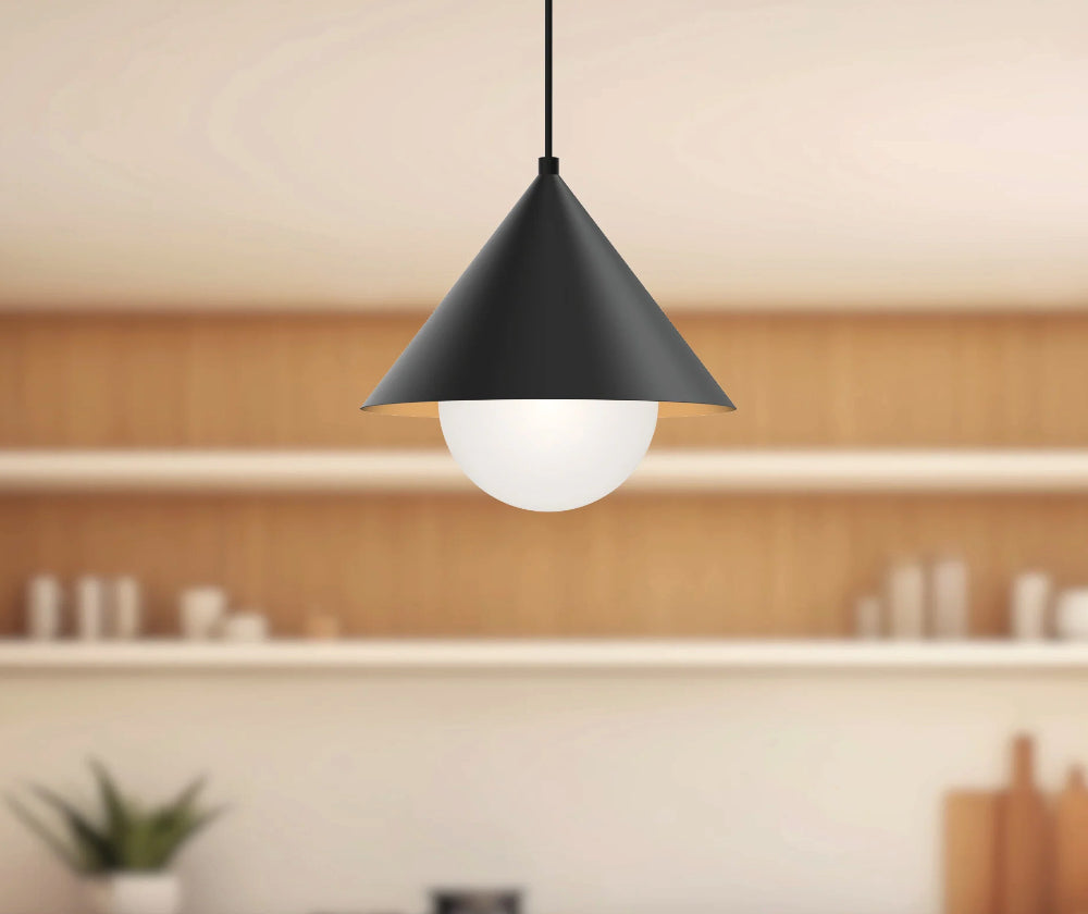 Acier peint ou plaqué, verre opale, fil de 72 pouces