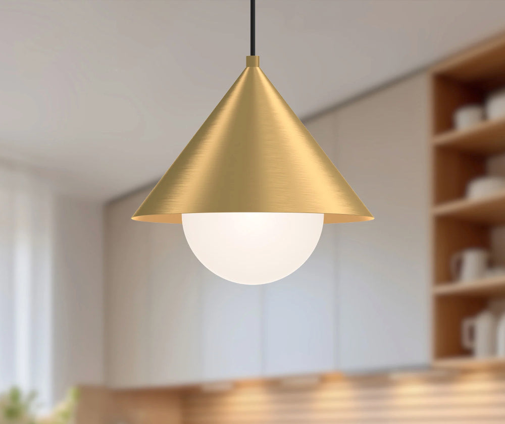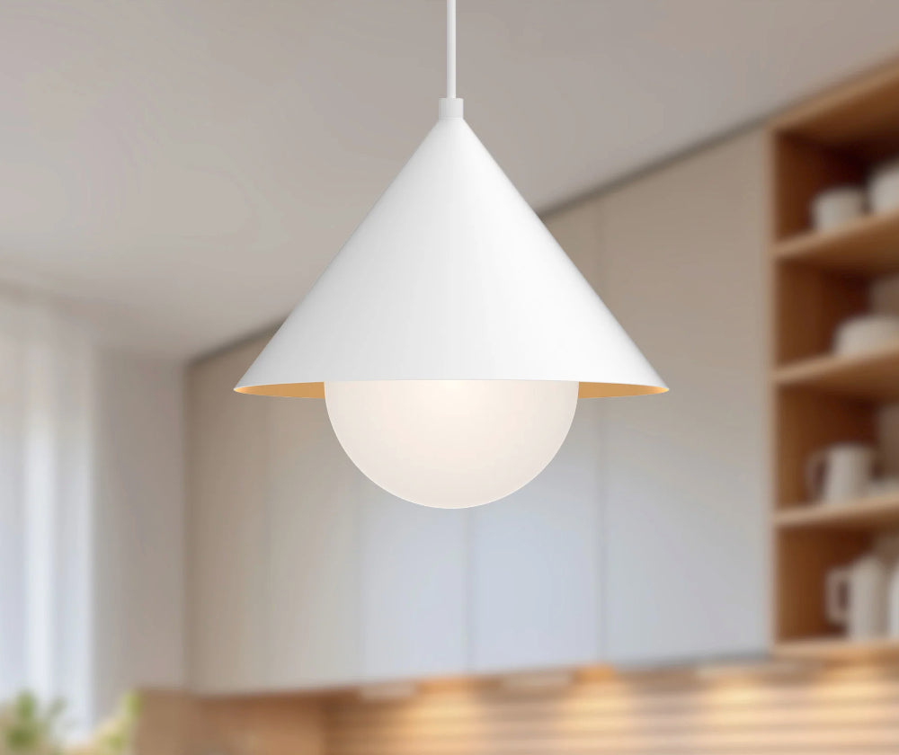 Inspirée du design japonais, la suspension Remy ajoute du style à un design simpliste. Avec des nuances fortes et triangulaires et des détails qui rendent chaque pièce unique, cette collection se démarque. Les finitions noir mat et blanc mat présentent une touche d'or sur l'abat-jour intérieur pour plus de style. Également disponible en or brossé.