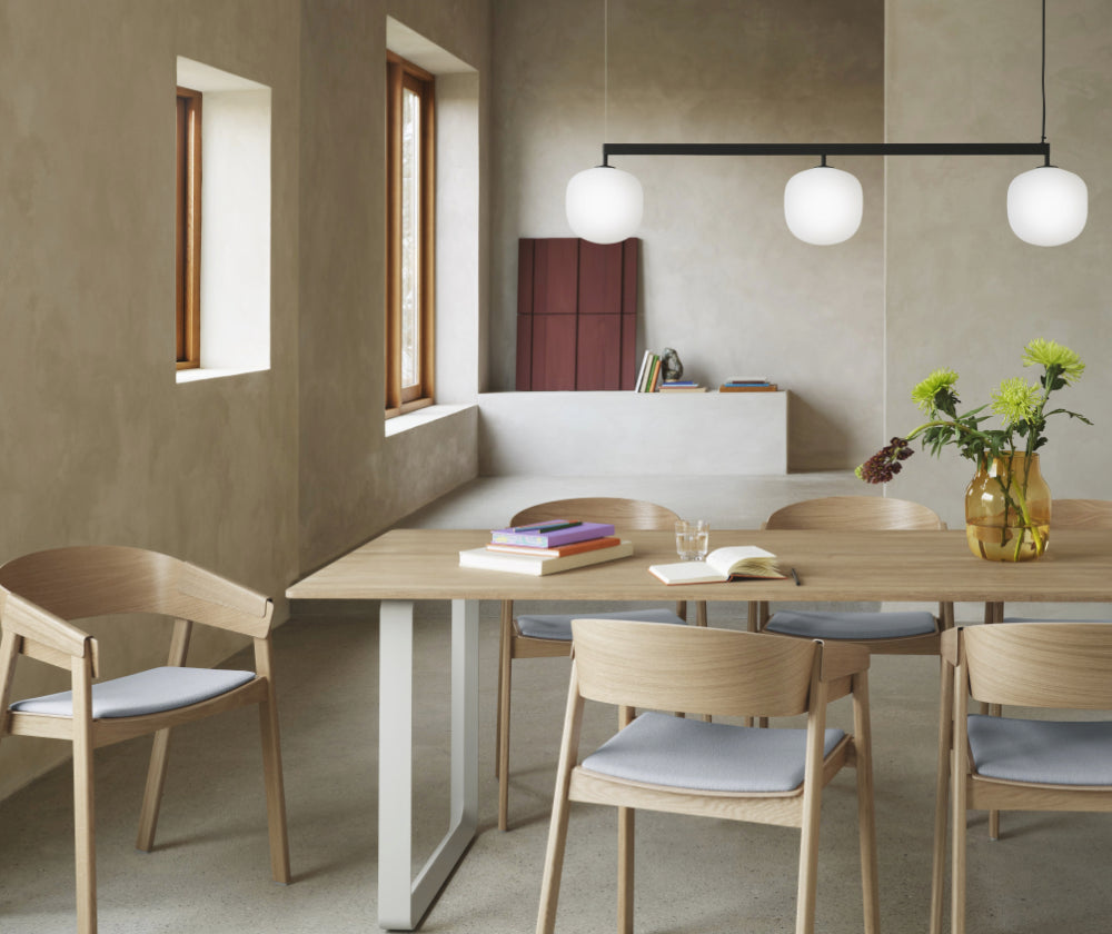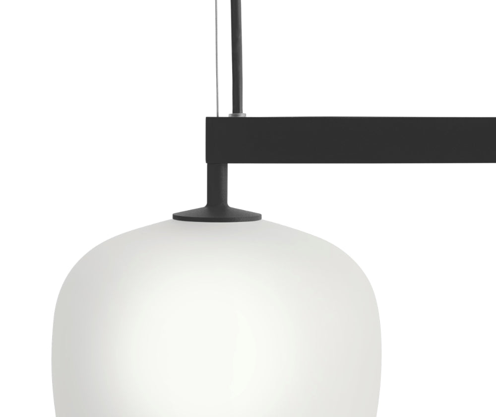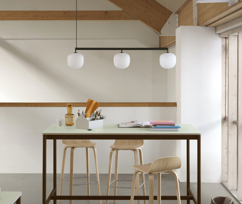 La suspension Rime Rail crée un jeu de lumière rythmé, reliant trois lampes Rime dans une composition harmonieuse. Sa douce lumière diffuse et son éclairage uniforme déplacent l'attention sur l'espace, alliant fonctionnalité et atmosphère. Le verre soufflé à la mainet le rail thermolaqué résistant apportent profondeur et sensibilité tactile, lui conférant une présence raffinée et saisissante au-dessus des tables à manger, des comptoirs de cuisine et des salles de conférence.