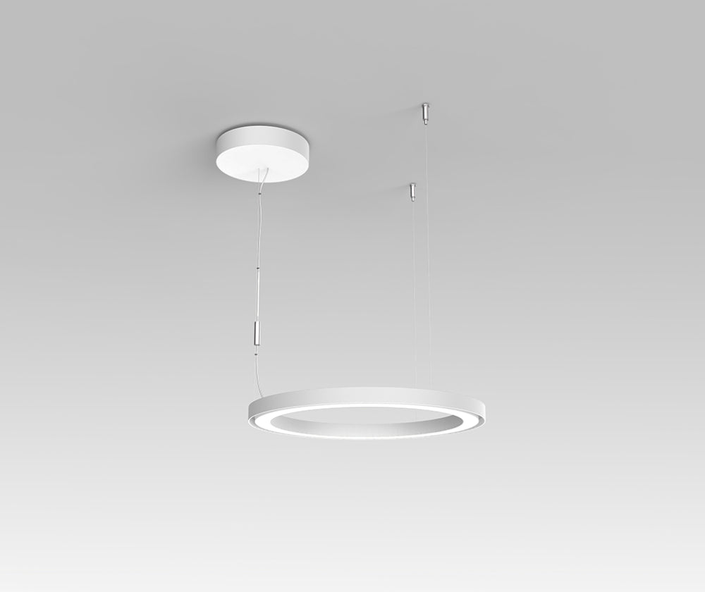 Le système de suspension Ripple façonne les qualités de l'espace par croissance moléculaire, composé de structures circulaires de trois diamètres différents. La suspension fonctionne à travers des couches de performances qui peuvent être modulées selon les besoins. L'élément de base du produit est un anneau circulaire dont le profil est une synthèse d'optique et d'ingénierie mécanique. Les éléments peuvent également être combinés de manière plus complexes : des lignes simples ou des géométries d'éléments avec un diamètre constant, aux compositions qui combinent différents diamètres dans une croissance plus organique et plus libre, en passant par des solutions saisissantes et frappantes. Design : BJARKE INGELS GROUP