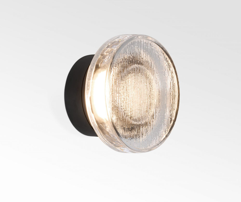 Roc est une applique murale compacte pour l'intérieur et l'extérieur avec un diffuseur en verre pressé. Son verre ondulant cache la lumière, la brouillant. Le luminaire ne se contente pas de diffuser de la lumière, il parvient aussi à créer une ambiance. Roc ressemble à un bloc de glace brillant et sa texture irrégulière, presque organique, qui invite au toucher.