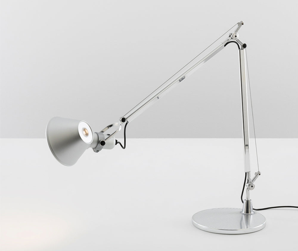 Un mélange d’équilibre et de mouvement, la lampe de table Tolomeo Classic DEL est conçue pour une diffusion de la lumière d’une manière entièrement réglable. Créé en 1987 par De Lucchi et Fassina, Tolomeo est devenu une icône, 30 ans après sa naissance. Couleur aluminium, avec base, étau ou support pivot.