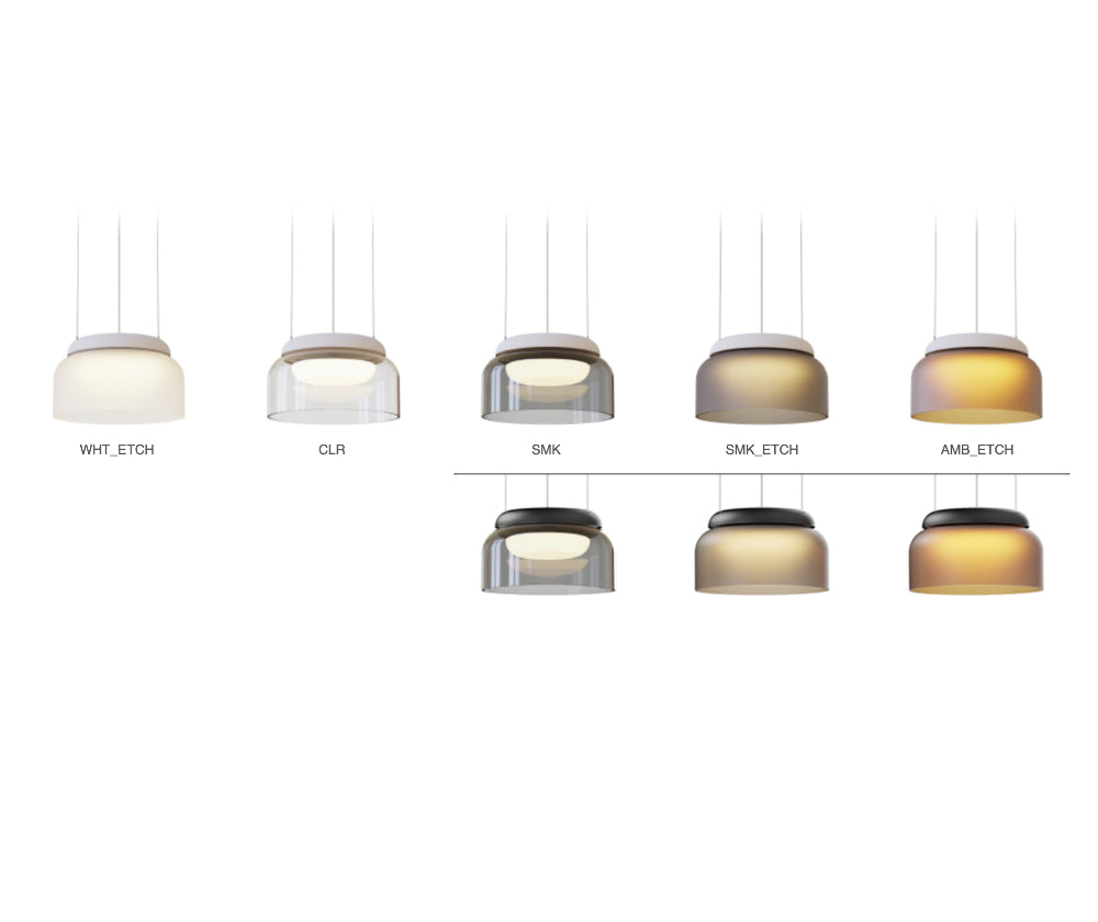 Verre soufflé blanc opale, clair ou gris fumé, structure en métal peint blanc ou noir, câble d'alimentation de 10'