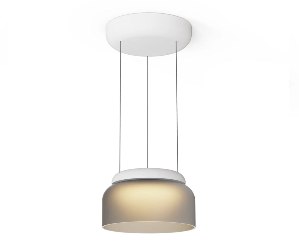 La suspension Totem Mini Down est le dernier ajout à la collection Totem, offrant le design modulaire emblématique dans une échelle plus compacte et personnalisée. Elle offre des solutions d'éclairage sur mesure pour les salles à manger, les comptoirs de cuisine ou les tables avec style. Ces mini suspensions présentent cinq superbes couleurs d'abat-jour en verre gravé blanc et ambre pour une lueur chaleureuse et diffuse, et clair et fumé pour un look élégant et moderne. Utilisant un module d'éclairage DEL, Totem Mini fournit un éclairage vers le bas, projetant une lueur chaude et réglable à travers son verre soufflé à la bouche. Cette suspension compacte allie harmonieusement élégance et fonctionnalité, ce qui en fait un ajout sophistiqué à tout espace.