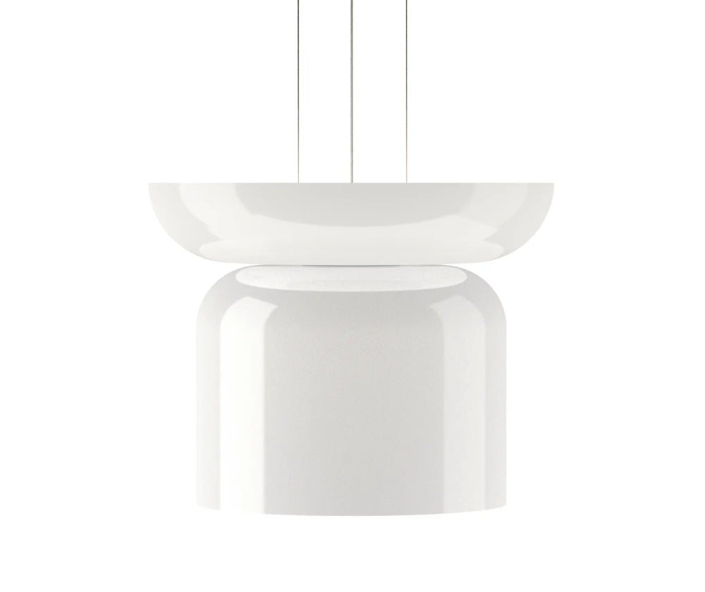 Totem est un système d'éclairage suspendu classique et très polyvalent composé d'abat-jour en verre opale soufflé de manière exquise conçus autour d'une plate-forme modulaire. Les formes géométriques douces et d'un blanc pur offrent un jeu charmant de combinaisons uniques pour apporter chaleur et élégance à n'importe quel espace. Il suffit de choisir parmi 4 formats d'abat-jour dans l'ordre décroissant (A, B, C, D) qui peuvent être utilisées dans des combinaisons d'abat-jour simples et doubles pour créer jusqu'à 20 modèles uniques pour satisfaire les besoins d'éclairage direct et indirect. Cette flexibilité permet de créer des groupements étonnants, convenant ainsi aux salles à manger, aux halls d'entrée et aux cages d'escalier.