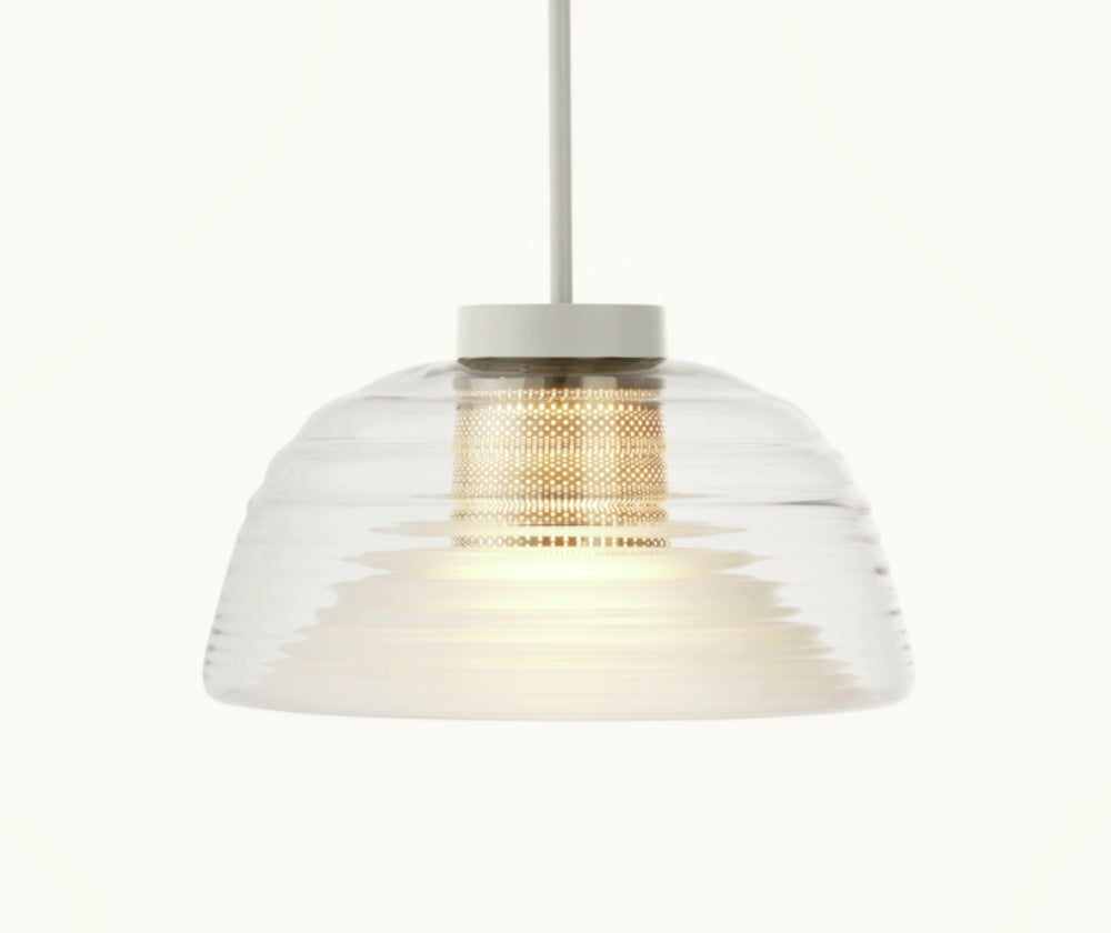 La suspension Two Layers apporte de nouvelles perspectives à la suspension en verre classique avec son verre soufflé à la bouche ondulé, créant des effets optiques uniques sous différents angles. Ce design raffiné combine du verre clair et dépoli avec une maille en acier perforée, offrant une lumière abondante et sans éblouissement. Le mélange de finitions brillantes et mates crée une forme harmonieuse et sculpturale qui agit comme une sculpture auto-illuminante. Parfait pour les salles à manger ou au-dessus des comptoirs, il ajoute une intrigue visuelle et de l'élégance à n'importe quel espace.
