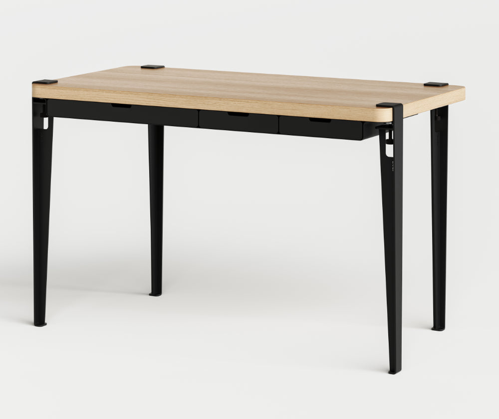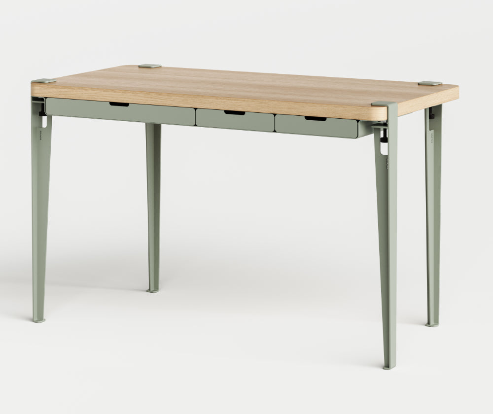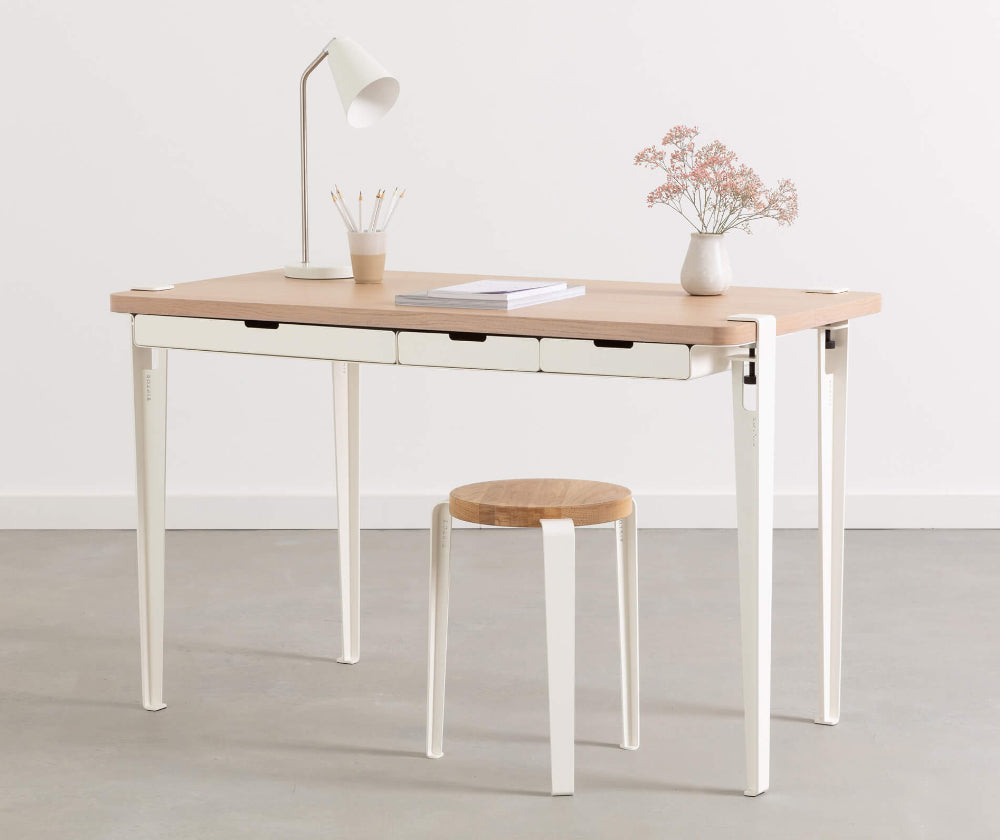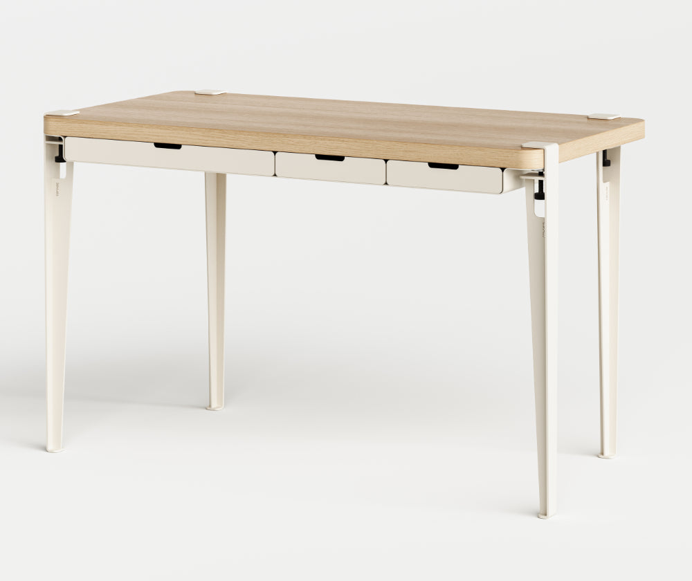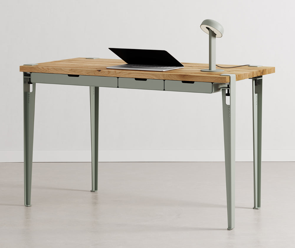 Le bureau TIPTOE allie design élégant et fonctionnalité, idéal pour les espaces de travail modernes. Il associe un plateau en bois plaqué chêne, des pieds en acier robustes et le module de rangement WAVE, équipé de trois tiroirs en acier fonctionnels. Le rangement s’intègre facilement entre le plateau et les pieds, offrant une flexibilité d’installation : en dessous pour un rangement discret ou au-dessus pour un accès rapide. Fonctionnel et esthétique, ce bureau est conçu pour optimiser votre espace de travail avec style.