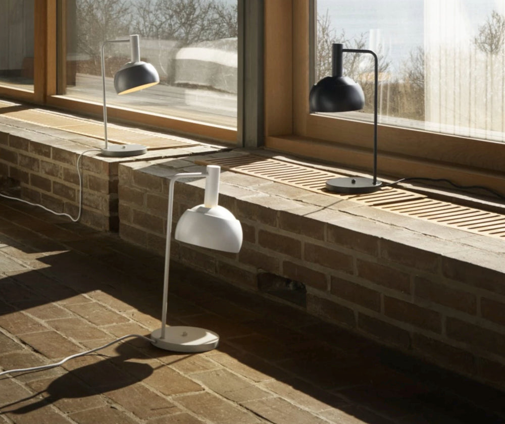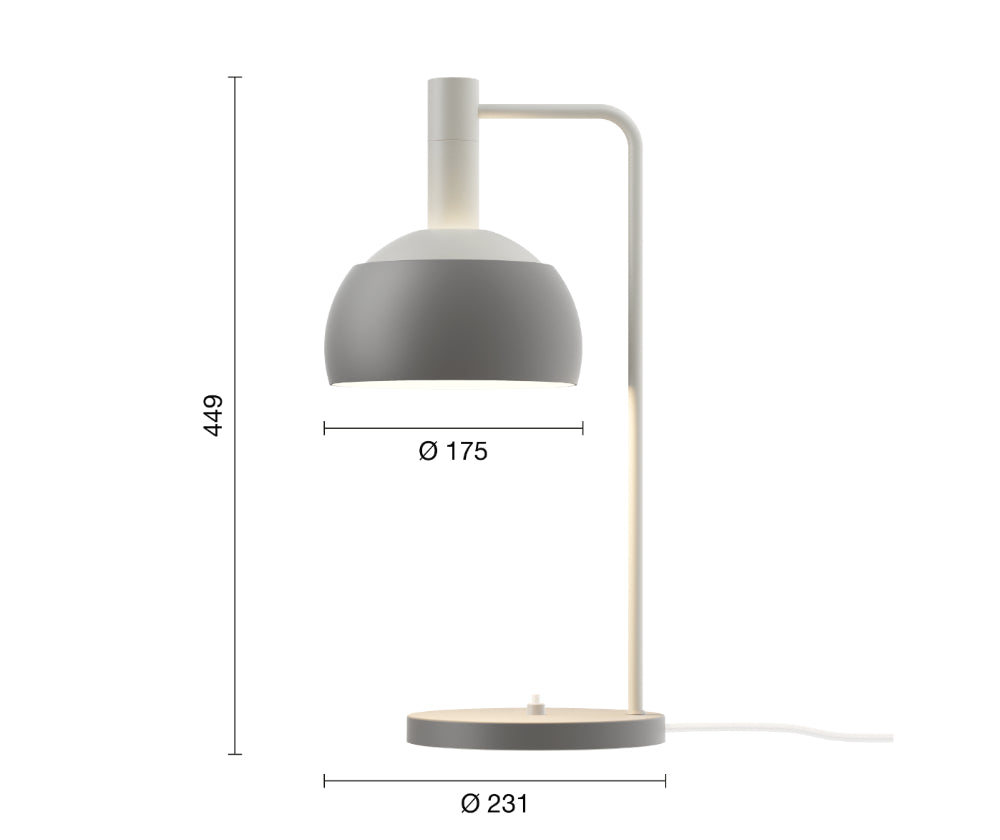 Ce modèle de lampe est l'un des rares jamais créés par Finn Juhl (1912-1989), l'un des architectes danois les plus renommés. Initialement conçues en 1963, la suspension et la lampe de table ont été réintroduites sous le nom de FJ Elements en 2025, avec notamment la version originale bicolore grise. Si les matériaux et les lignes géométriques du design de FJ Elements se distinguent par leur simplicité, la créativité ludique transparaît dans la rotation de l'abat-jour supérieur sur l'abat-jour inférieur. Cette fonction permet de contrôler la direction de la lumière de multiples façons, tout en transformant l'apparence de la lampe.