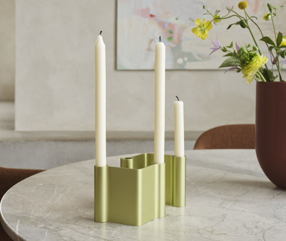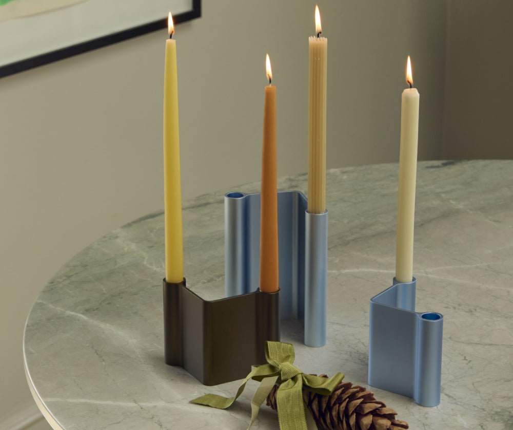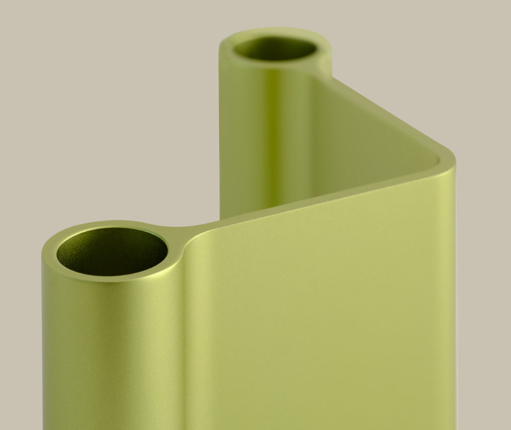 Le chandelier double Pair invite à la créativité, offrant la possibilité d'associer deux pièces ou plus et d'explorer diverses combinaisons de hauteurs et de couleurs, ou d'exposer une seule pièce comme un élément décoratif raffiné. Fabriqué en aluminium anodisé, ses courbes douces et sa finition soignée apportent une touche à la fois ludique et élégante à tout espace.