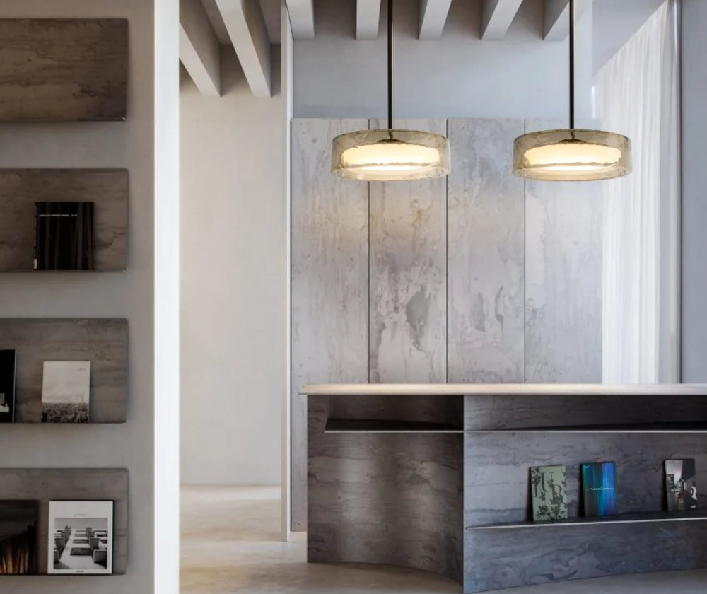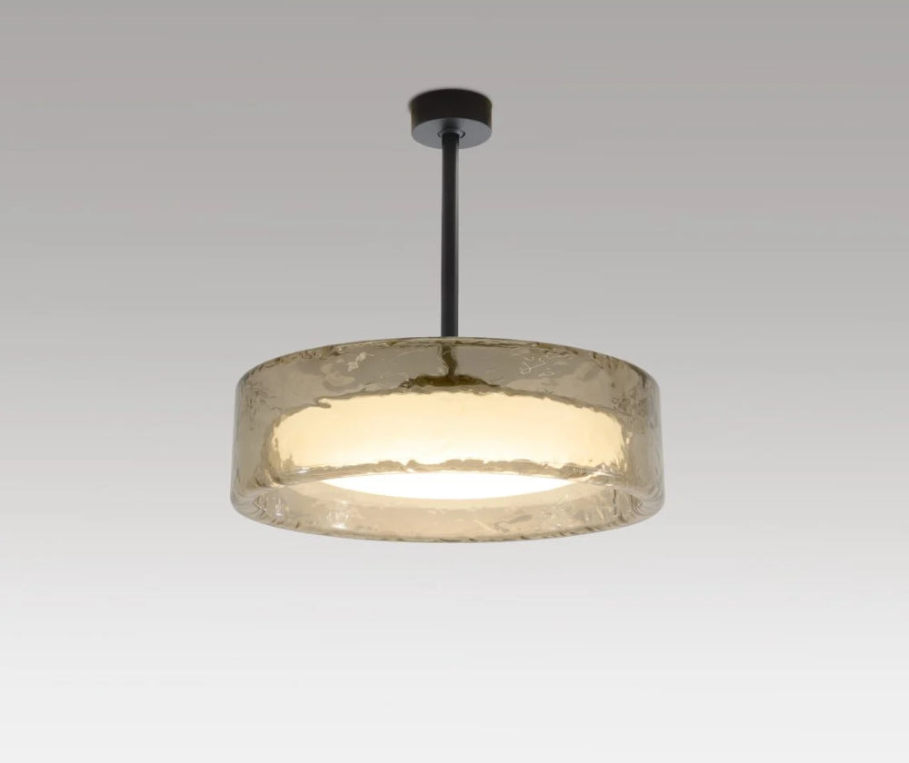 Audacieux, transparent et organique. Le luminaire Ringo en version plafonnier ou suspension se présente comme une forme géométrique arrondie qui évoque un bloc de glace. Conçue pour les grands espaces, cette lampe surprend par son matériau : un polycarbonate transparent capable de créer des reflets optiques. Un jeu de contrastes entre lumière et matière, force et légèreté, présence et transparence.
