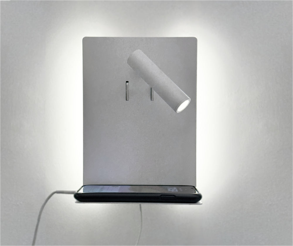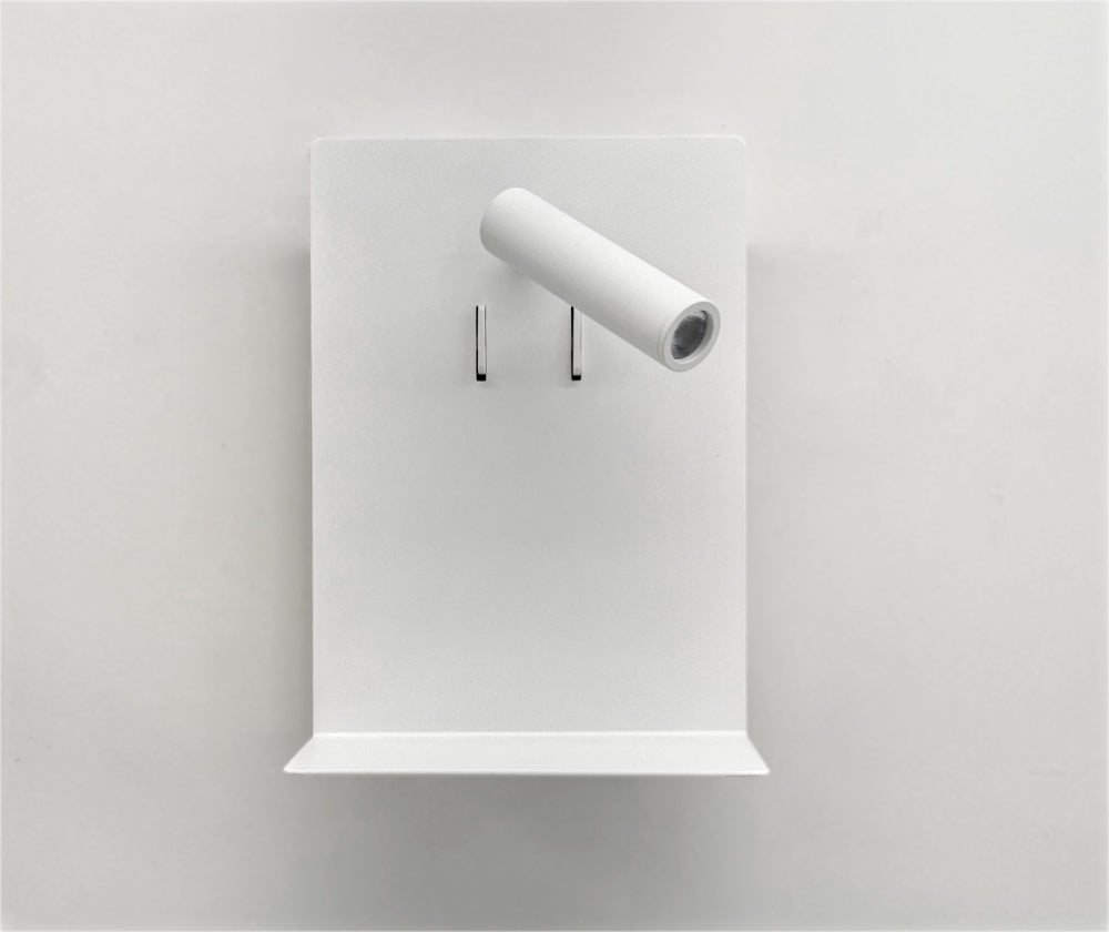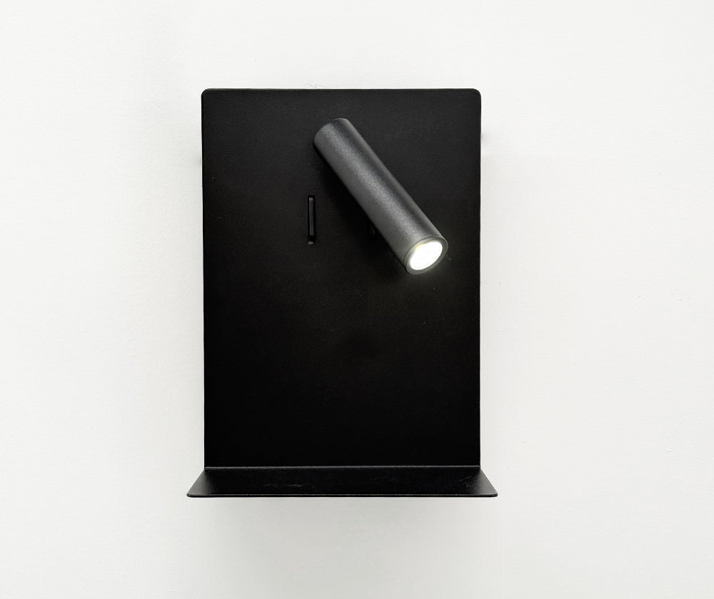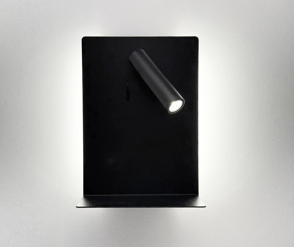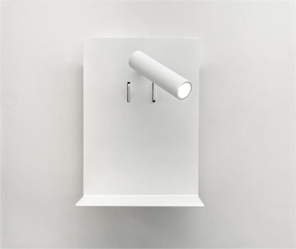 La murale Tabla est idéale pour une installation au-dessus de la table de chevet. Elle crée une douce ambiance grâce à son rétroéclairage, tout en offrant un éclairage de lecture précis grâce à son petit projecteur orientable. Les deux sources lumineuses peuvent être allumées séparément à l’aide des commutateurs situés à l’avant du luminaire. La Tabla est offerte en blanc ou en noir, pour s’harmoniser facilement à votre décor.